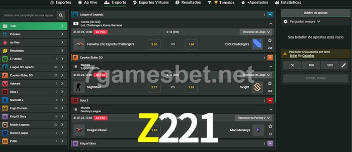 O Z221 oferece uma grande seleção de opções de apostas em e-sports com probabilidades competitivas